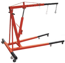 液压小吊车主要用于修理汽车时起吊引擎或其它重物及运输重物;产品为钢材制作,表面喷漆;产品性能:①、使用油泵,使工作更轻松。②、底部使用万向轮和铸铁轮,使产品更耐用,移动更灵活。③、前脚管可以折叠,存放体积更小。